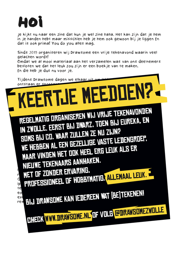 Deelnemende tekenaars: Max Kuivenhoven, Ron Wanders, Maarten van Drempt, Jop Kraaijkamp, Cynthia Lim, Laurens van Walbeek.