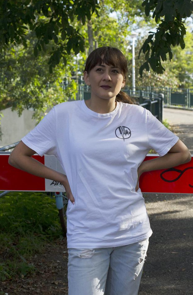 Wit T-shirt met LVW logo voorop en vriendelijke kwal achterop